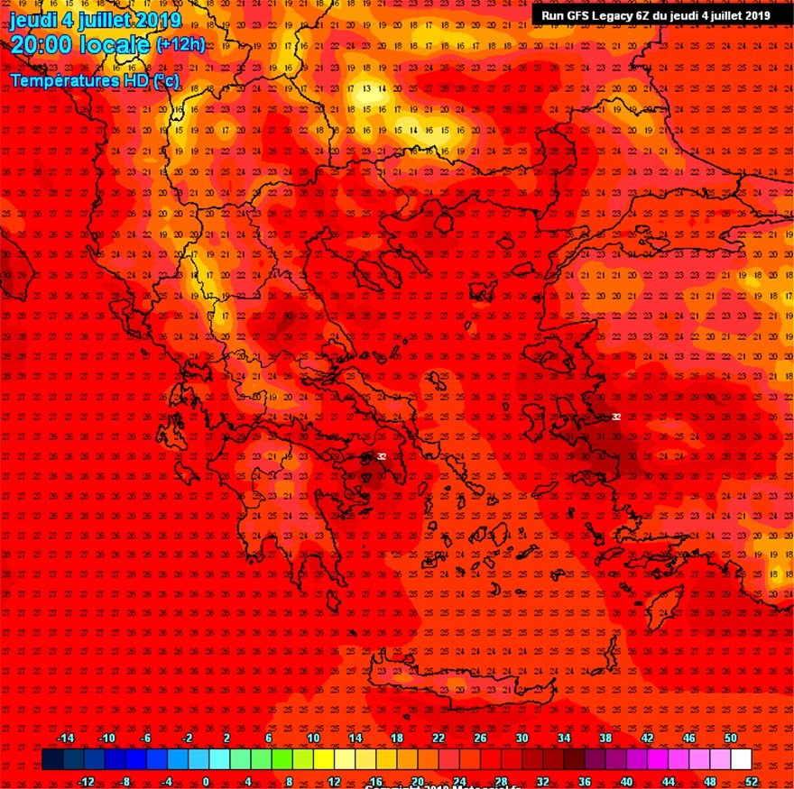 Αυτές είναι οι επικρατούσες θερμοκρασίες στα δύο μέτρα από την επιφάνεια του εδάφους, στις 17:00, στις 20:00 (πρόγνωση) και στις 23:00 (πρόγνωση)