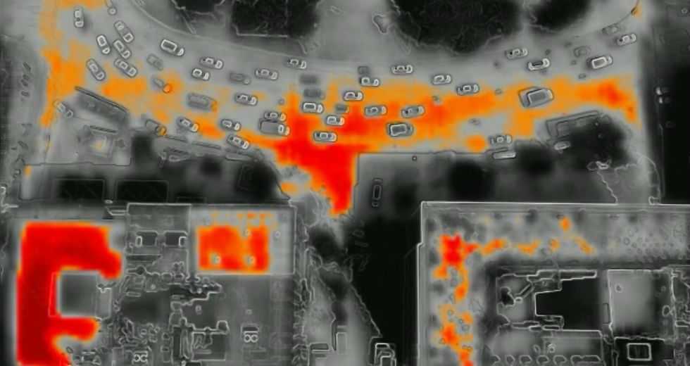 Όπως αναφέρει η Εφημερίδα των Συντακτών, το θερμικό φορτίο στην Πλατεία Συντάγματος και την Πλατεία Ομονοίας καταγράφει η εναέρια λήψη με χρήση θερμικής κάμερας.