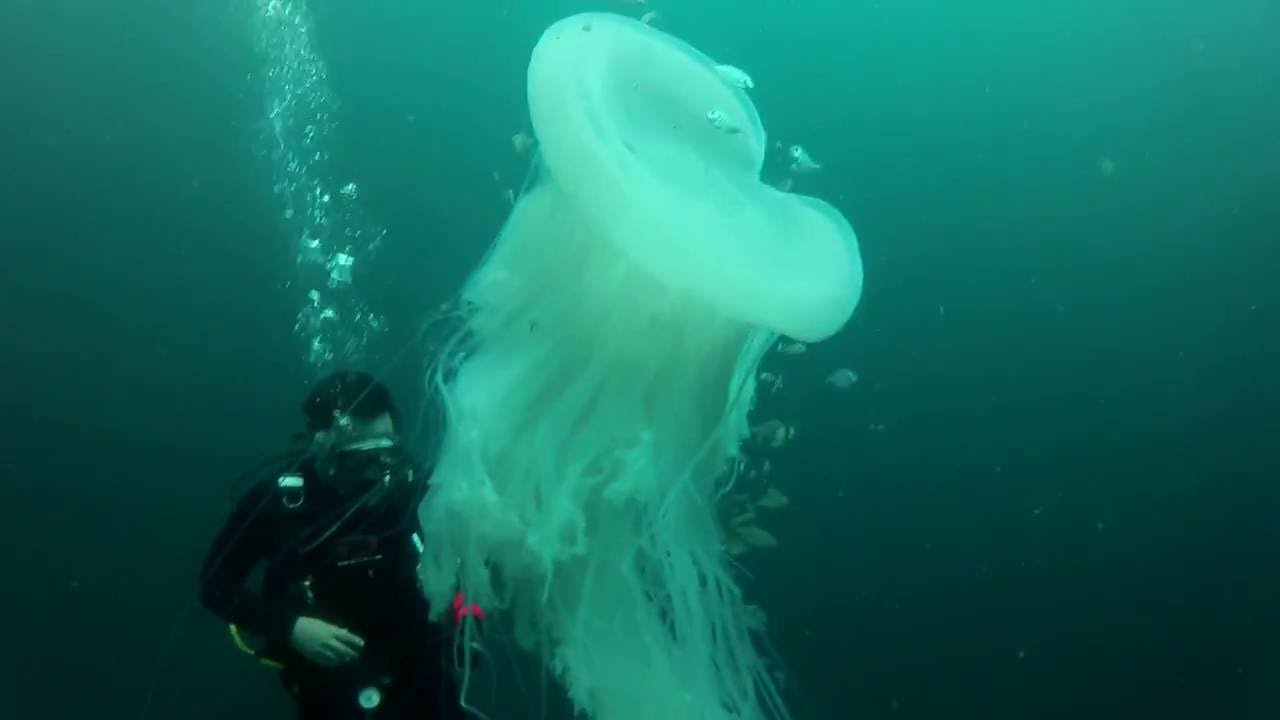 Αυτή την τεράστια μέδουσα αντίκρισαν ξαφνικά δύτες, ανοιχτά της Κορνουάλης. «Δεν έχω δει ποτέ τόσο μεγάλη. Επρεπε να κοιτάξεις δεύτερη φορά και να αναρωτηθείς αν πράγματι έχει μήκος 1,5 μέτρο», δήλωσε στον Guardian η Λίζι Ντέιλι, μια βιολόγος που ήταν ανάμεσα σε εκείνους που είδαν από κοντά τη μέδουσα.