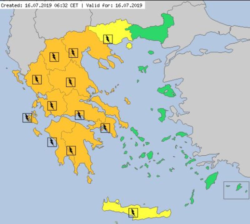 Ο χάρτης προειδοποίησης του meteoalarm για σήμερα, Τρίτη: