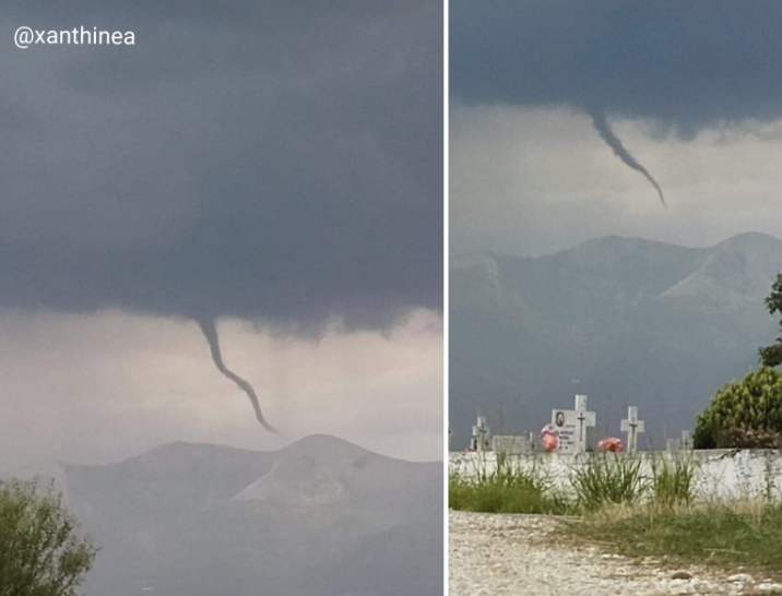 Μεταξύ αυτών και η Ξάνθη, οι κάτοικοι της οποίας είδαν έναν τεράστιο ανεμοστρόβιλο να δημιουργείται ψηλά στα βουνά της πόλης την Τρίτη (16/07).