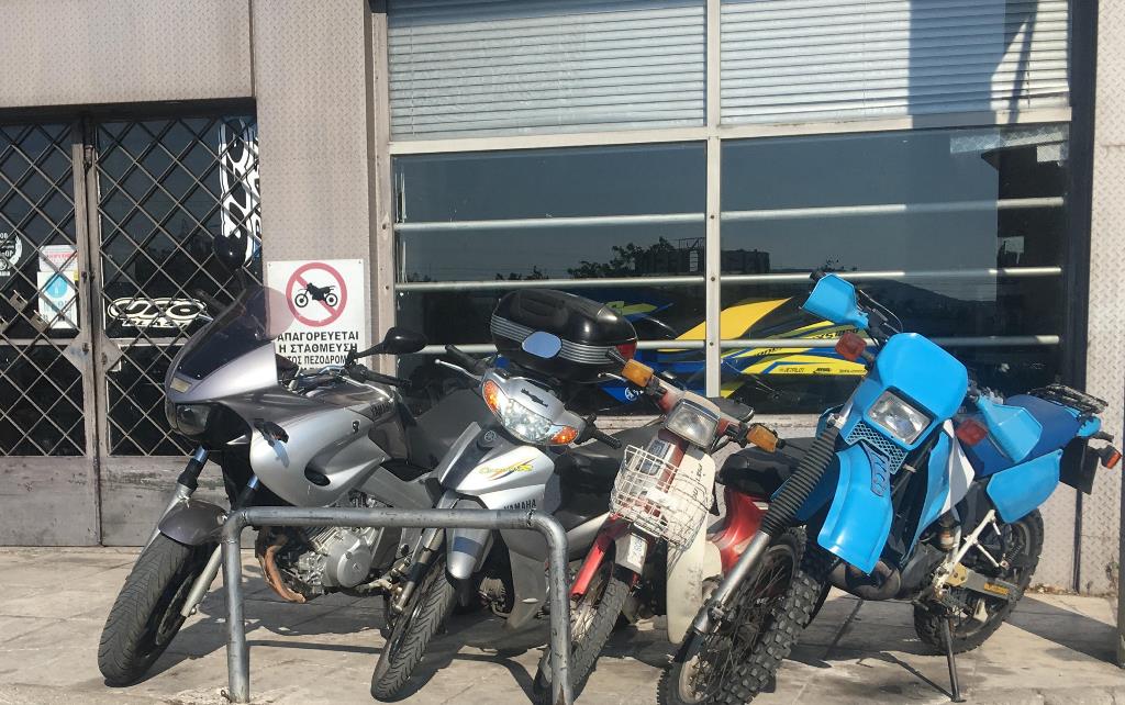 Στο δεύτερο φωτογραφικό ντοκουμέντο υπάρχουν δύο ταμπέλες που γράφουν «Απαγορεύεται η στάθμευση δικύκλων».