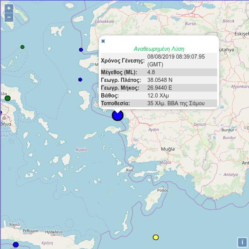 Σεισμός 4,8 Ρίχτερ ταρακούνησε τη Σάμο το πρωί της Πέμπτης.