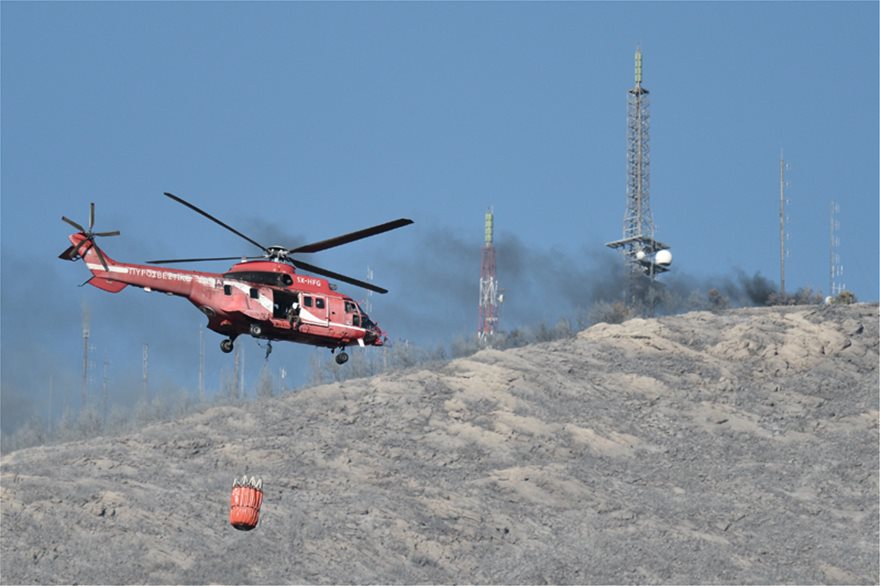 Το θετικό είναι ότι έχει κοπάσει ελαφρώς η ένταση των ανέμων που νωρίτερα ήταν έντασης 6-7 μποφόρ με ισχυρές ριπές που βοήθησαν στην εξάπλωση της πυρκαγιάς.