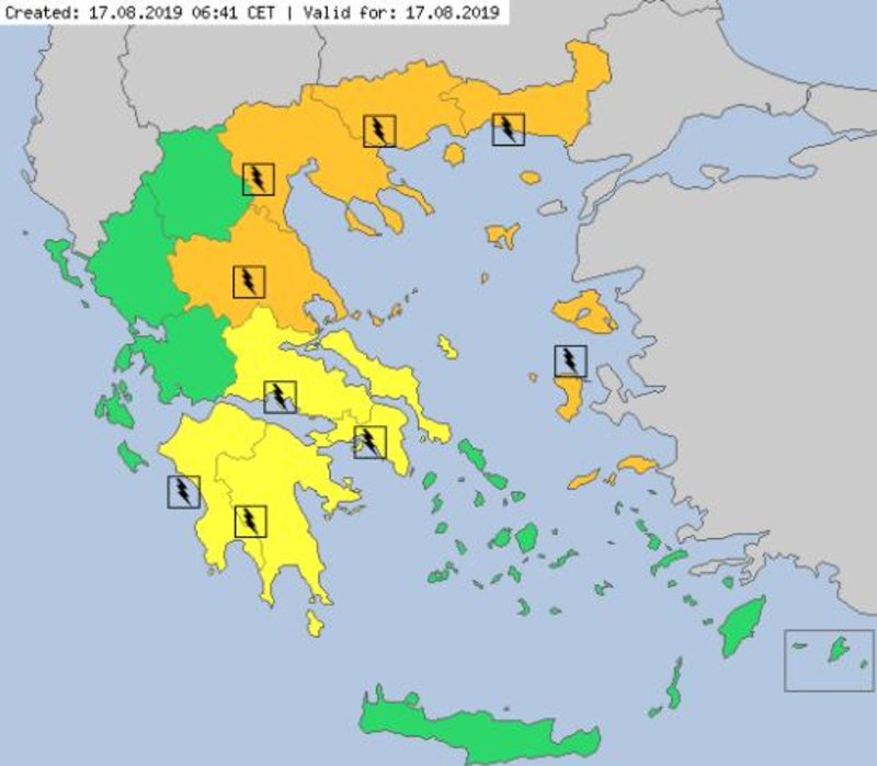 Το Meteo Alarm προειδοποιεί για βροχές, καταιγίδες και χαλαζοπτώσεις.