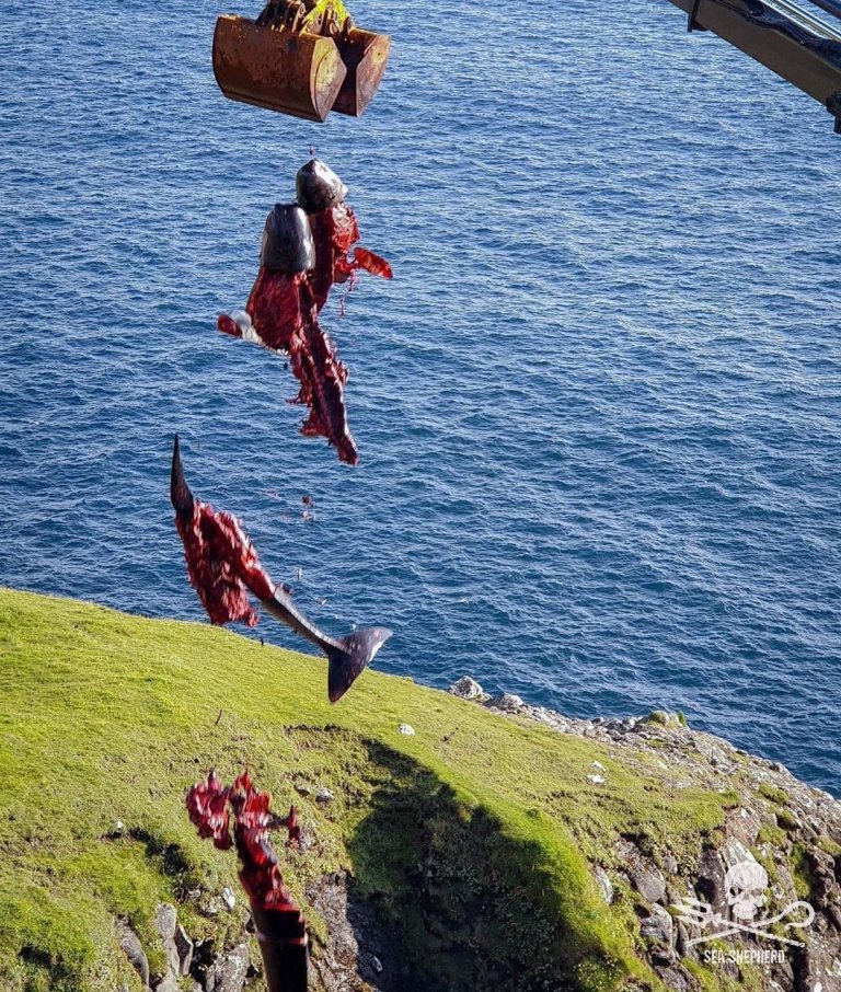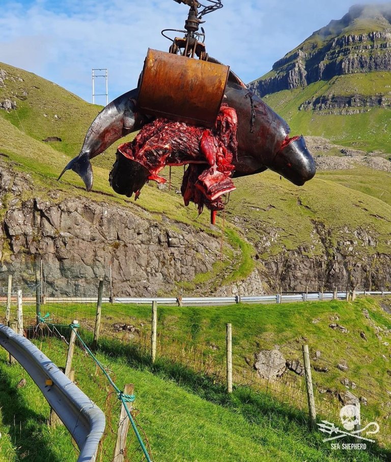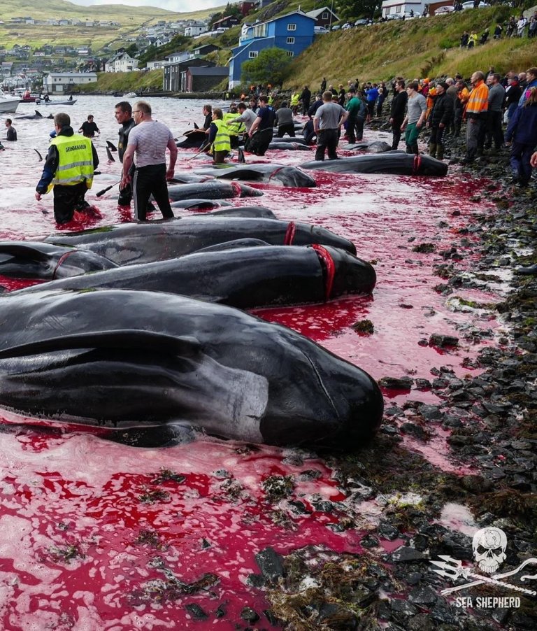 Συνολικά 94 μεγάπτερες φάλαινες σφαγιάστηκαν άγρια αυτή την εβδομάδα, ενώ κάποιες από αυτές είχαν αγέννητα μικρά στις κοιλιές τους, που απομακρύνθηκαν, φυσικά, νεκρά. Η περιβαλλοντική ομάδα SeaShepherd UK, που έδωσε στη δημοσιότητα τις συγκεκριμένες εικόνες, αποκάλυψε ότι πέντε από τις δολοφονημένες φάλαινες ήταν έγκυες. Σημείωσε, δε, πως το κυνήγι διήρκεσε περισσότερο από πέντε ώρες, με τα σκάφη να παρενοχλούν και να κυνηγούν το κοπάδι των φαλαινών, κλείνοντας τες σε έναν κόλπο, προκειμένου να τις σκοτώσουν.