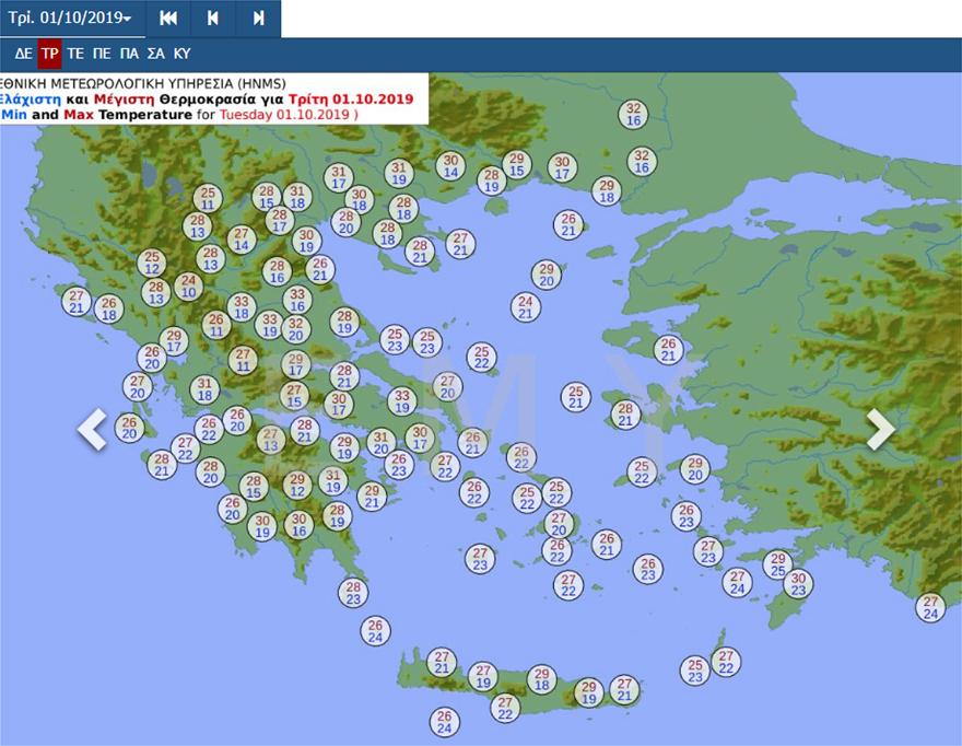 Εβδομαδιαία Πρόγνωση Καιρού από 30 Σεπτεμβρίου 2019