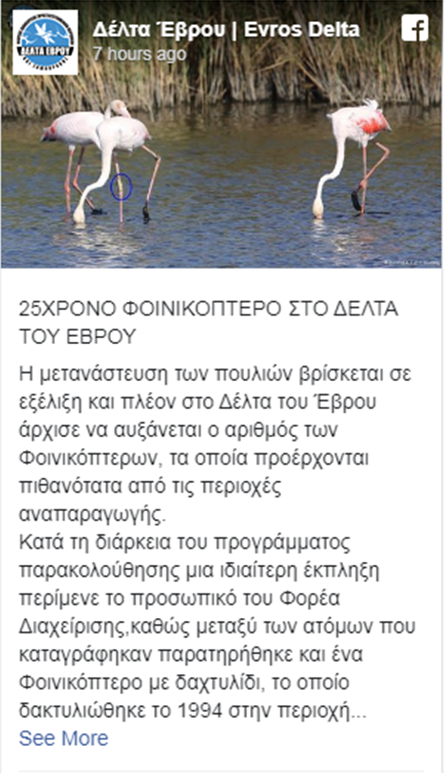 Τα τελευταία χρόνια καταγράφονται πολλά δακτυλιωμένα Φοινικόπτερα στο Δέλτα του Έβρου, λόγω της δραστηριοποίησης του Φορέα Διαχείρισης. Αυτές οι παρατηρήσεις δίνουν πολύτιμα δεδομένα για τα πουλιά, αλλά και για τη μεγάλη αξία του υγροτόπου για την ορνιθοπανίδα.