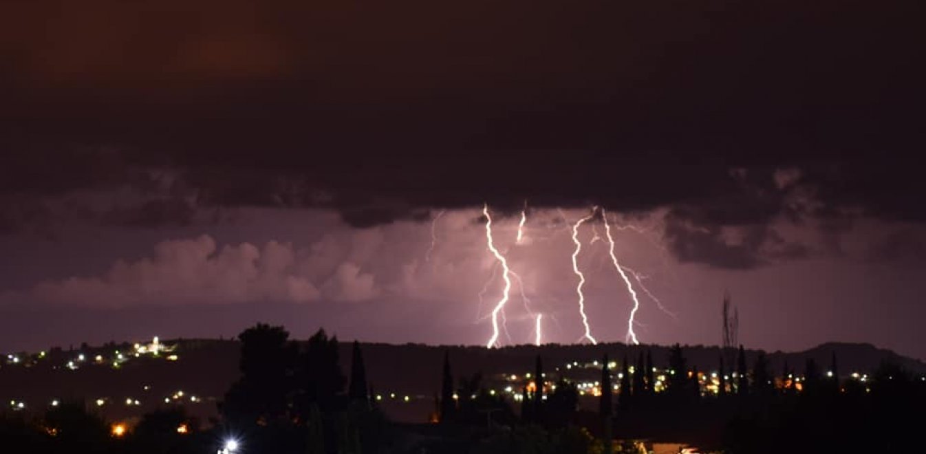 Οι καιρικές προβλέψεις επιβεβαιώθηκαν και λίγο πριν τις 11 το βράδυ ξεκίνησαν έντονα καιρικά φαινόμενα με ισχυρή βροχόπτωση που είχε τη μορφή καταιγίδας, συνοδευόμενη από κεραυνούς.