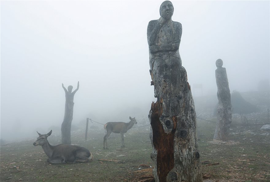 Στις φωτογραφίες φαίνονται να ξεκουράζονται ανάμεσα στα ξυλόγλυπτα του Πάρκου των Ψυχών, των έργων που δημιουργήθηκαν από κορμούς καμμένων δένδρων στο ύψος του παλιού σανατορίου.