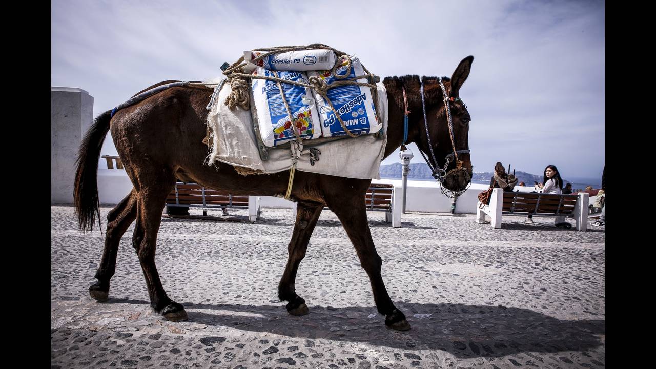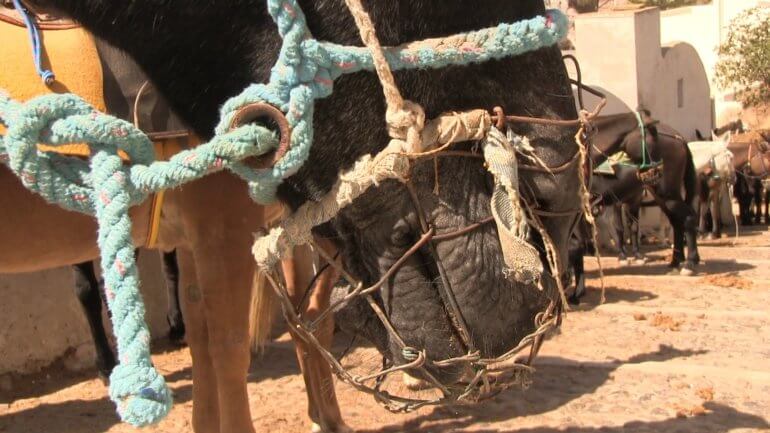 Με βάση τα νέα στοιχεία, που προέκυψαν από έρευνα στην οποία συμμετείχαν αυτόπτες μάρτυρες, περίπου 100 εξαντλημένα γαϊδούρια και μουλάρια εξακολουθούν να αναγκάζονται και να μεταφέρουν σαν «ταξί», τουρίστες, στα ολισθηρά σοκάκια της πόλης των Φηρών σε καθημερινή βάση.