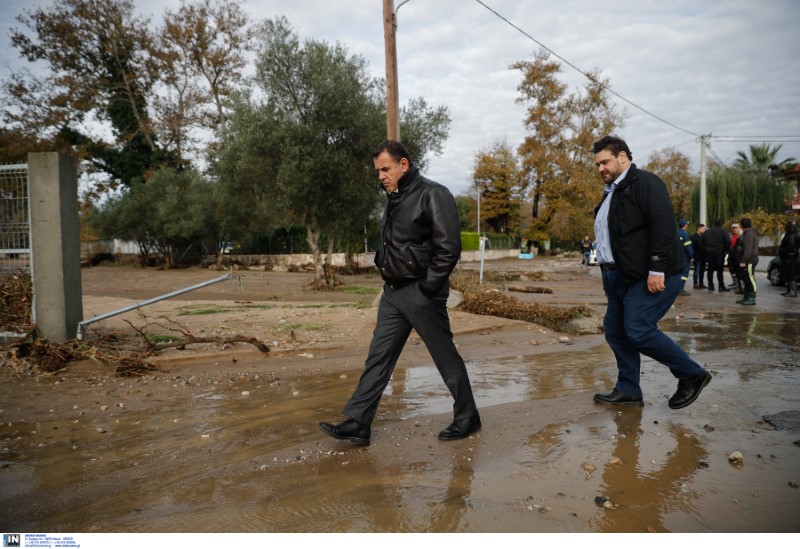 Το κυβερνητικό κλιμάκιο αμέσως μετά αναχωρεί για τη Θάσο που επίσης επλήγη σοβαρότατα από την κακοκαιρία.