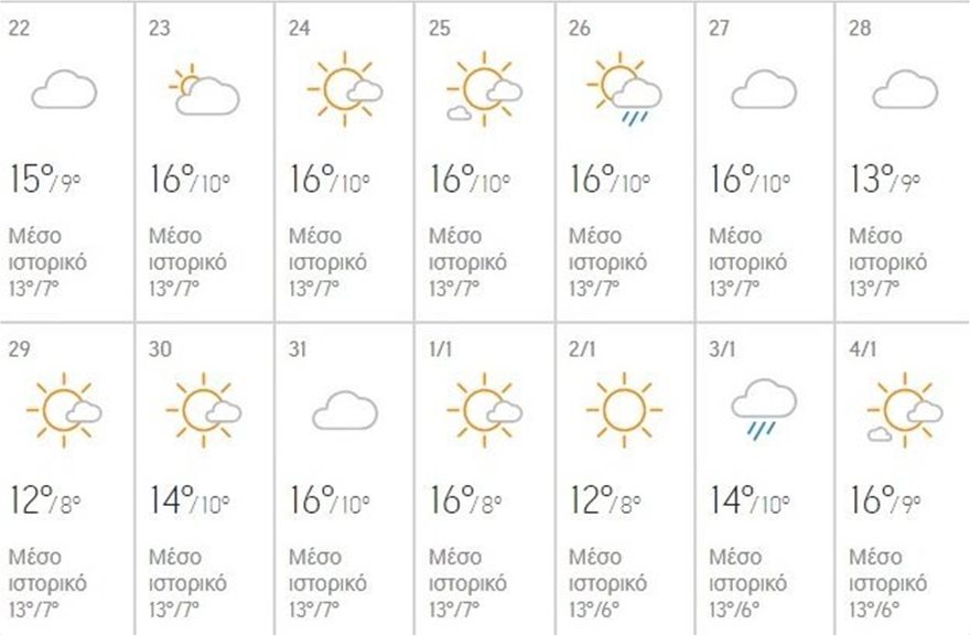 Στην Αθήνα ο υδράργυρος θα δείξει τα Χριστούγεννα από 8 έως 16 βαθμούς όπως άλλωστε την πραμονή Πρωτοχρονιάς και ανήμερα.