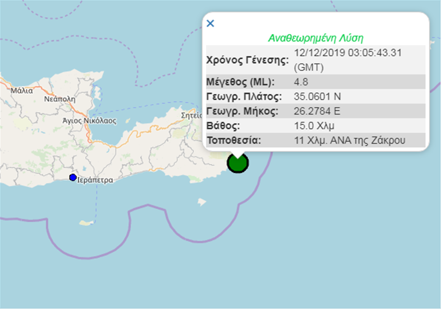 Μία ακόμη σεισμική δόνηση, αυτή τη φορά μεγέθους 4,8 βαθμών της κλίμακας Ρίχτερ, ταρακούνησε τα ξημερώματα την Κρήτη και συγκεκριμένα την περιοχή του Αγίου Νικολάου.