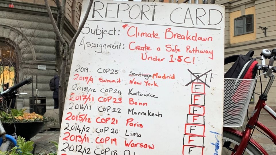 Στη διαδήλωση που πραγματοποιήθηκε οι νεαροί ακτιβιστές παρουσίασαν έναν έλεγχο βαθμών προς τους πολιτικούς στους οποίους έβαλαν «κάτω από τη βάση» στην αντιμετώπιση της κλιματικής αλλαγής στις Συνόδους του ΟΗΕ, που διεξήχθησαν την τελευταία δεκαετία. Οι συστάσεις στον έλεγχο ήταν: «Πρέπει να προσπαθήσετε περισσότερο!».