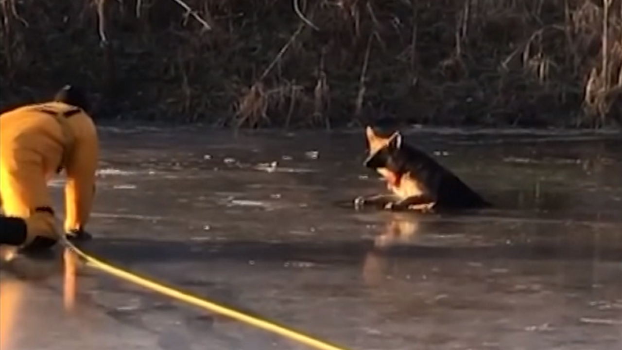 Δείτε το συγκινητικό βίντεο ενός σκύλου που είχε παγιδευθεί στον πάγο από πυροσβέστες.