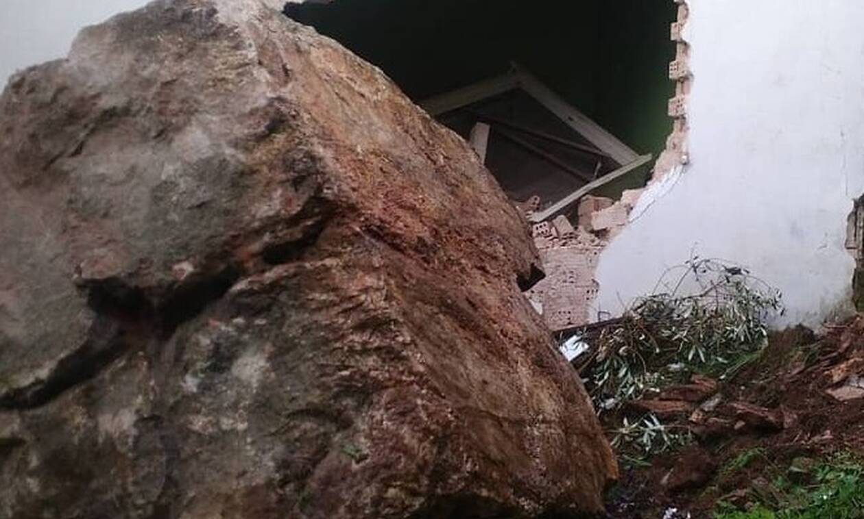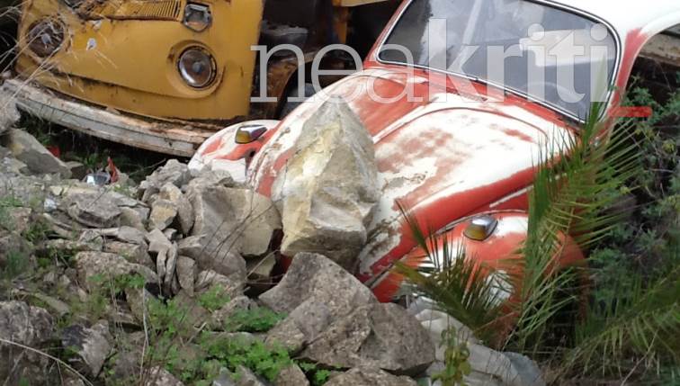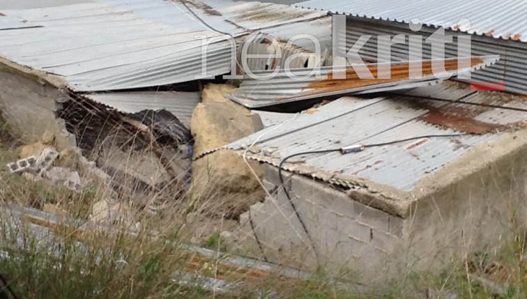 Σκηνές τρόμου στα Πιτσίδια του νομού Ηρακλείου Κρήτης, μετά την αποκόλληση τεράστιου βράχου, ο οποίος έπεσε σε υπόστεγο μια ανάσα από σπίτι οικογένειας.