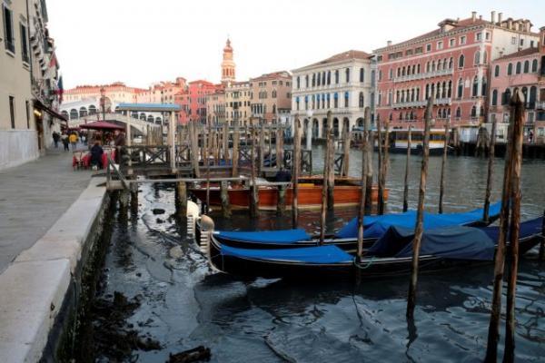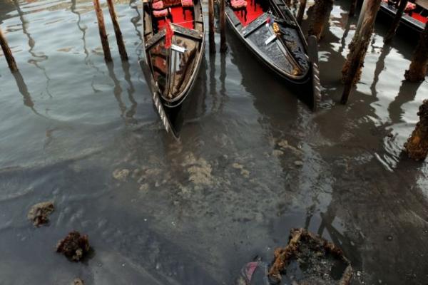 Τώρα, όπως φαίνεται και στις φωτογραφίες, οι γόνδολες αναπαύονται σχεδόν στον πάτο των υδάτινων καναλιών, αφού η άμπωτη (σ.σ. η πτώση της στάθμης της θάλασσας λόγω παλιρροϊκών φαινομένων) έκανε τα νερά να υποχωρήσουν.