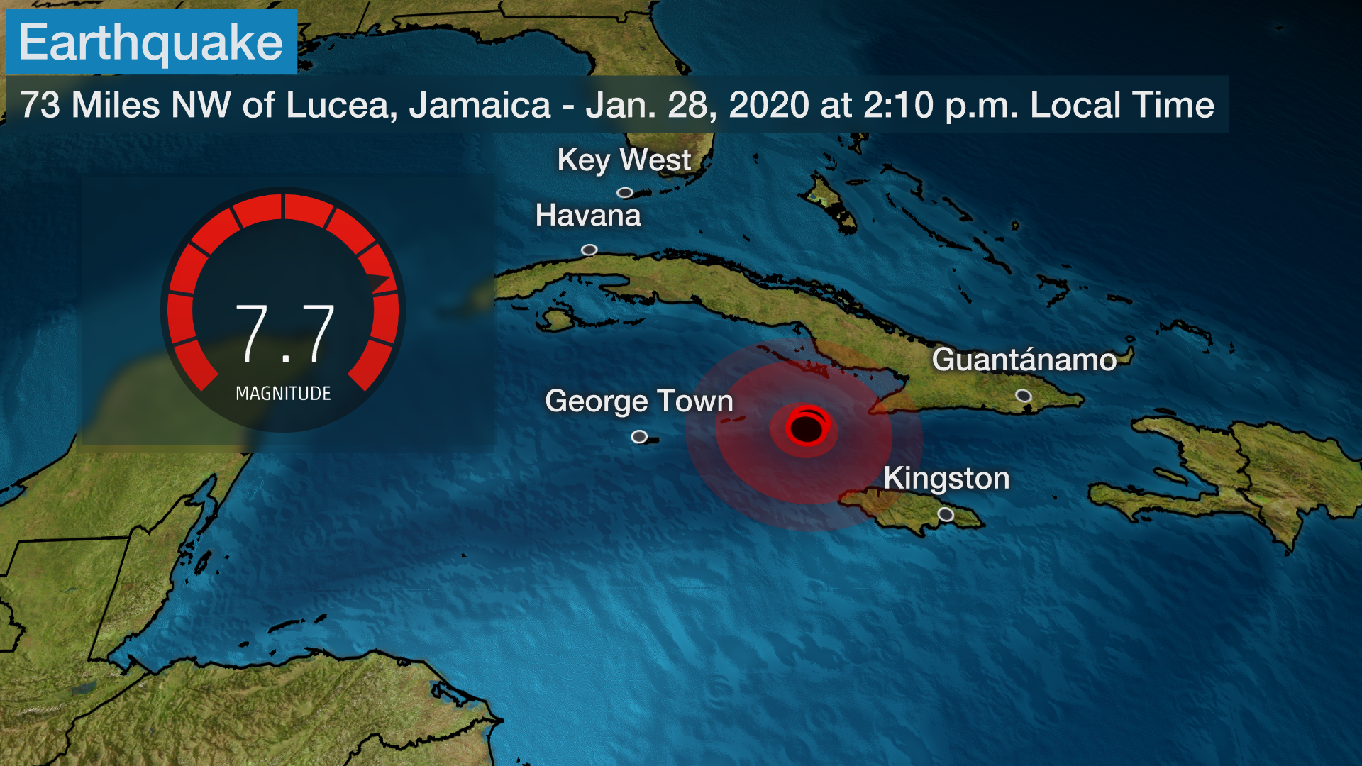 Ο σεισμός εντάσσεται στη μετασεισμική ακολουθία των 7,7 Ρίχτερ που είχε προηγηθεί στη θάλασσα της Καραϊβικής και έγινε αισθητός σε ολόκληρη την περιοχή, από την Κούβα και την Τζαμάικα, έως τις αμερικανικές ακτές.
