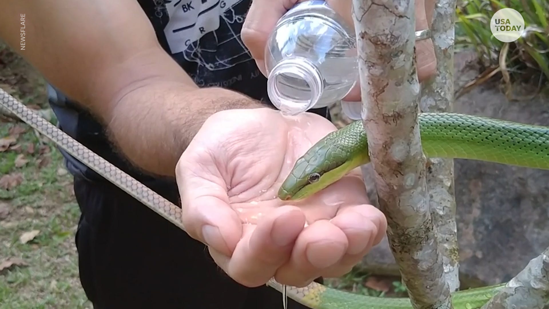 Την εκπληκτική στιγμή που διψασμένο φίδι πίνει νερό από τη χούφτα πεζοπόρου κατέγραψε σε βίντεο η σύντροφός του!