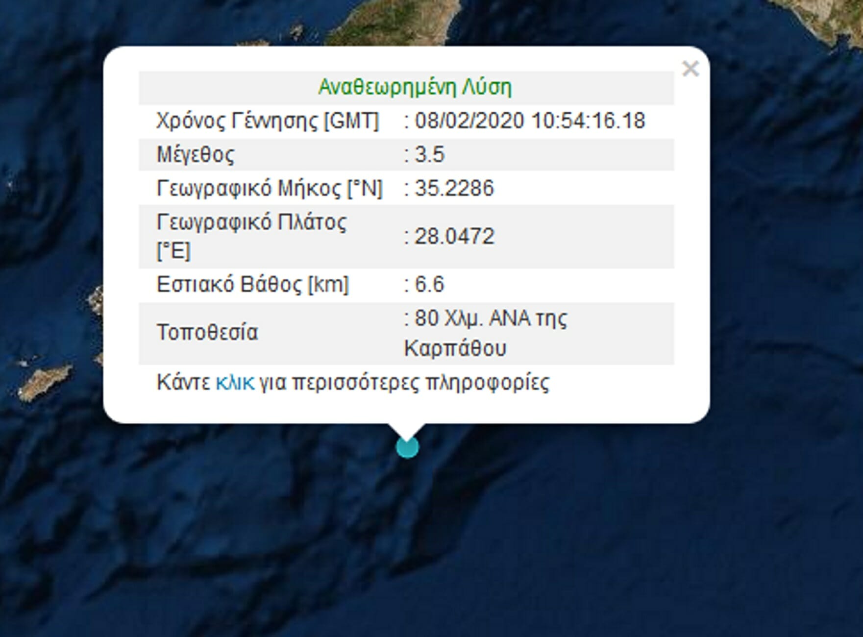 Ο σεισμός είχε επίκεντρο τη θαλάσσια περιοχή 80 χιλιόμετρα νοτιοανατολικά της Καρπάθου και εστιακό βάθος μόλις 6,6 χιλιόμετρα, σύμφωνα με τη μέτρηση του Γεωδυναμικού Ινστιτούτου