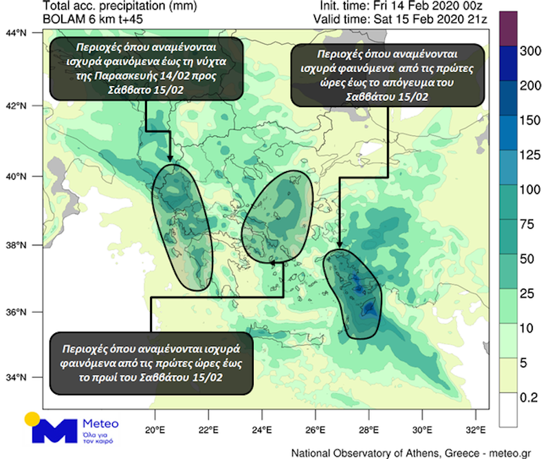 Στην Αττική αναμένονται βροχές από το μεσημέρι της Παρασκευής έως και το απόγευμα του Σαββάτου, οι οποίες κατά τη διάρκεια της νύχτας της Παρασκευής θα είναι κατά τόπους ισχυρές και υπάρχει μεγάλη πιθανότητα εκδήλωσης καταιγίδων. Στη Θεσσαλονίκη αναμένονται βροχές και ενδεχομένως καταιγίδες από το μεσημέρι της Παρασκευής έως τις πρώτες ώρες του Σαββάτου.