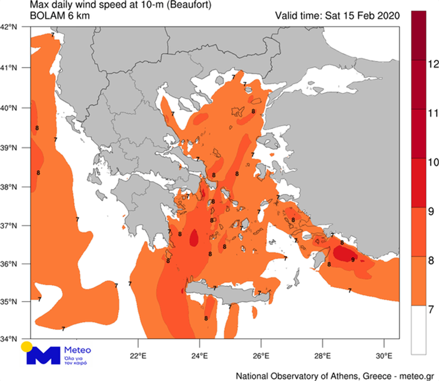 Ισχυρές βροχές σημειώθηκαν από την αρχή του εικοσιτετραώρου έως το πρωί του Σαββάτου, κυρίως στα νότια και νοτιανατολικά ηπειρωτικά και στο Αιγαίο. Καταιγίδες εκδηλώθηκαν κατά κύριο λόγο στο Αιγαίο, όπου τα φαινόμενα κατά τόπους ήταν ισχυρά, ιδίως στη περίπτωση των Φούρνων, όπου σε διάστημα δυόμιση ωρών έπεσαν περίπου 106 χιλιοστά βροχής, ενώ από την αρχή του εικοσιτετράωρου έως το πρωί έπεσαν συνολικά 132 χιλιοστά βροχής, σύμφωνα με το meteo του Εθνικού Αστεροσκοπείου Αθηνών (ΕΑΑ).