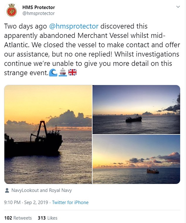 Τον περασμένο Σεπτέμβριο εντοπίστηκε να πλέει καταμεσής του Ατλαντικού από το βρετανικό πολεμικό πλοίο HMS Protector.