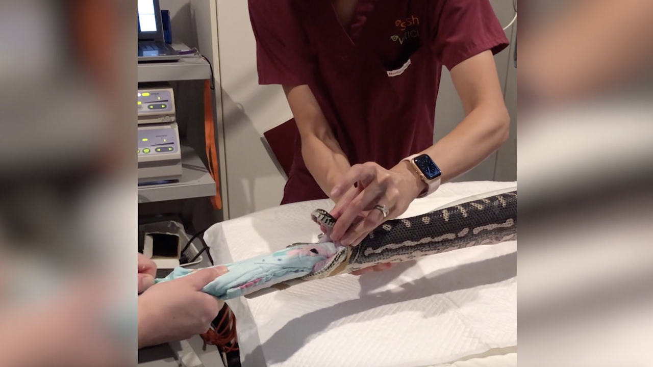 Οι κτηνίατροι στην Αυστραλία έβγαλαν μια πετσέτα θαλάσσης από ένα κατοικίδιο φίδι.