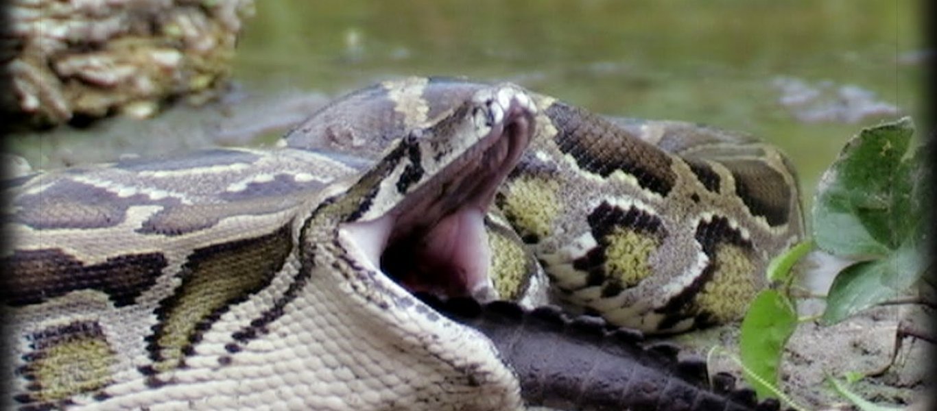Όμως, ο ιπτάμενος θηρευτής μετατράπηκε ο ίδιος σε θήραμα, καθώς στο νερό παραμόνευε ένας πύθωνας.