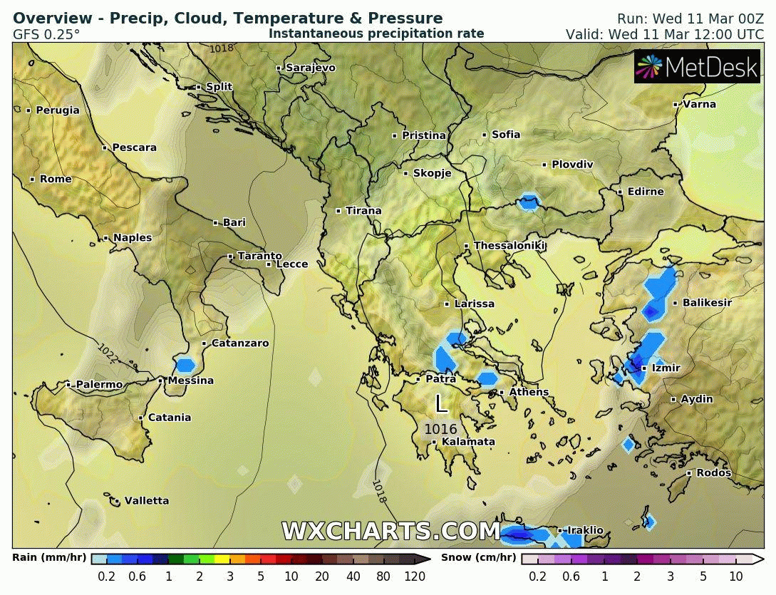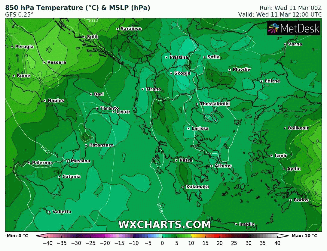 Στον επόμενο χάρτη δείτε την κίνηση των αερίων μαζών πάνω από την Ελλάδα: