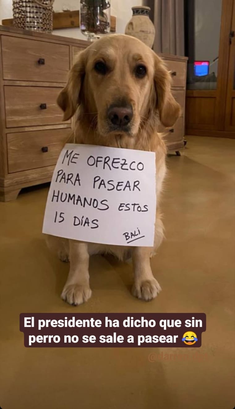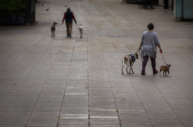 «Βγαίνεις πιο συχνά, αλλά για λιγότερη ώρα» λέει ο Λούις Φε, ένας 49χρονος δάσκαλος που βγάζει βόλτα τον Ντάρα, τον σκύλο του, κοντά σε μια εκκλησία στη Μαδρίτη. Άλλοι ιδιοκτήτες σκύλων λένε πως βγάζουν τα ζώα τους, απλά επειδή μπορούν ή επειδή βαριούνται στο σπίτι.