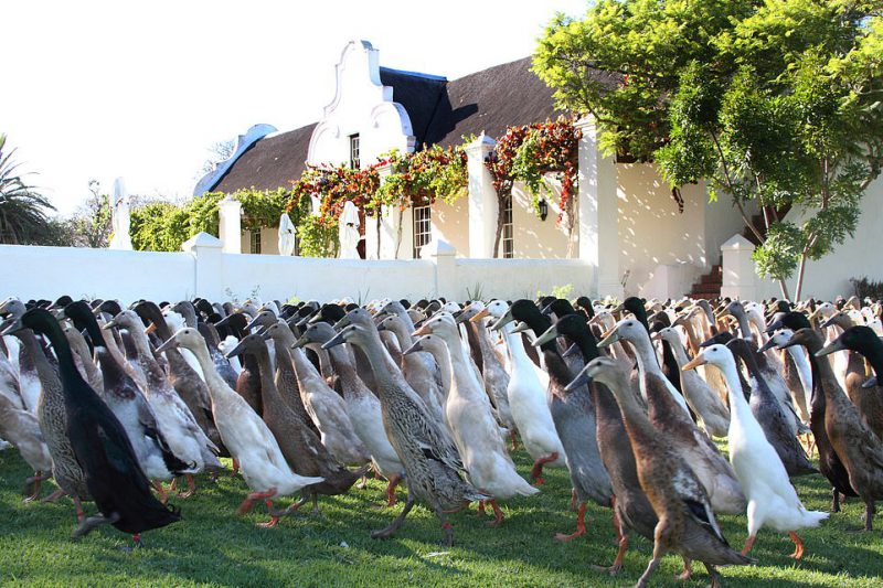Δεν πρόκειται για το μοναδικό κτήμα που χρησιμοποιεί πάπιες σε μια τέτοια διαδικασία, αλλά είναι το μοναδικό κτήμα στη Νότια Αφρική που χρησιμοποιεί 1.600 πάπιες για αυτό το σκοπό.