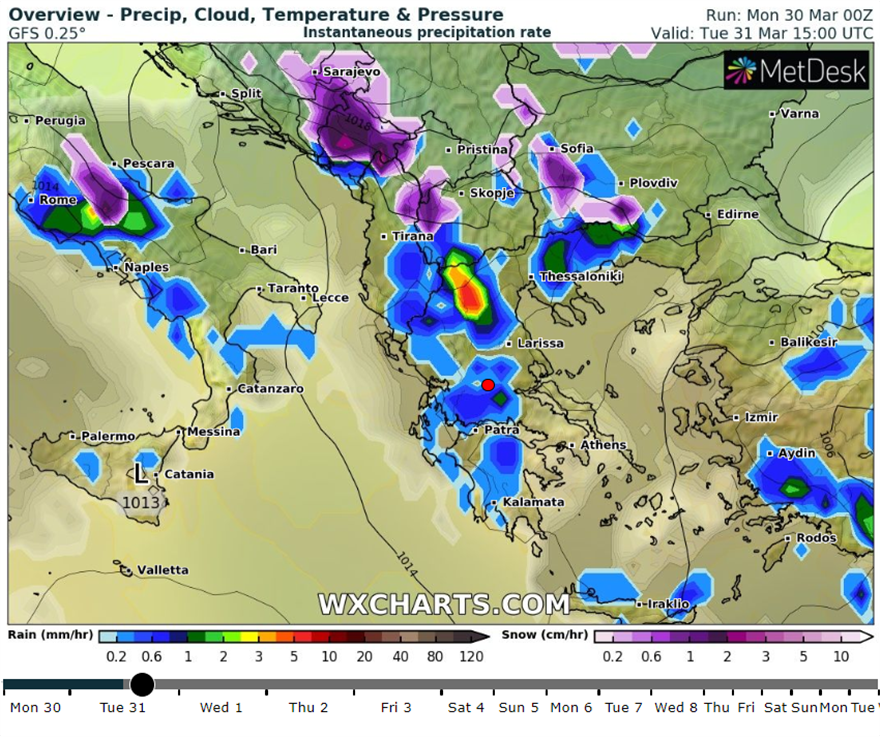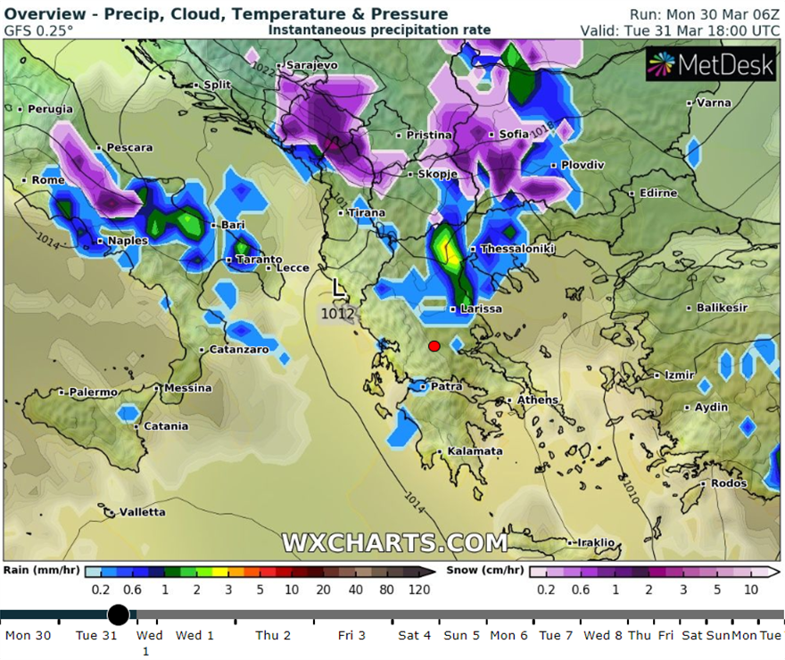 Δείτε σε χάρτες την κακοκαιρία που θα ξεσπάσει κυρίως από τα βόρεια, από την Τρίτη 31 Μαρτίου 2020