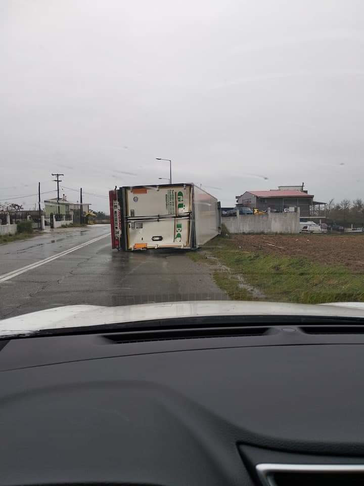 Ταυτόχρονα, η Τροχαία δεν σταμάτησε να δέχεται κλήσεις για φορτηγά που είχαν βγει από τον δρόμο και είχαν αναποδογυρίσει σε διάφορα σημεία του οδικού δικτύου.