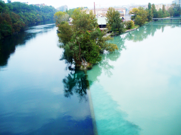Η διαφορά των χρωμάτων μπορεί να εξηγηθεί εύκολα αν και παρόλα αυτά «η εικόνα είναι χίλιες λέξεις»! Ο Ροδανός είναι καθαρότερος σε σχέση με τον ποταμό Arve, καθώς πηγάζει απευθείας από τη λίμνη Λεμάν της Γενεύης.
