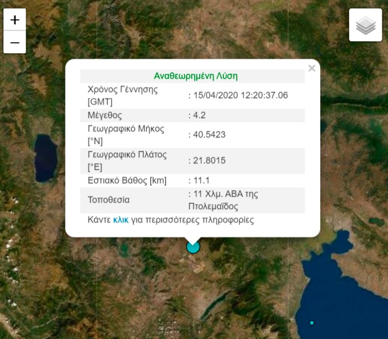 Ο σεισμός έγινε στις 15:20 στην περιοχή της Πτολεμαΐδας. Σύμφωνα με το Γεωδυναμικό Ινστιτούτου Αθηνών ο σεισμός είχε μέγεθος 4,2 Ρίχτερ.