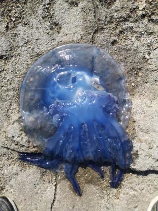 Κάτοικοι της Μεγάλης Βελανιδιάς στο Ν. Αγχίαλο, ενώ περπατούσαν σήμερα κατά τις πρώτες μεσημεριανές ώρες έπεσαν πάνω σε μια μπλε μέδουσα.