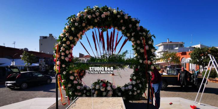 Χιλιάδες φυσικά πολύχρωμα λουλούδια κυρίως τριαντάφυλλα και πολύ πρασινάδα έχει το Πρωτομαγιάτικο στεφάνι με διάμετρο 2,5 μέτρα που στήθηκε στην πλατεία της Νεας Κίου