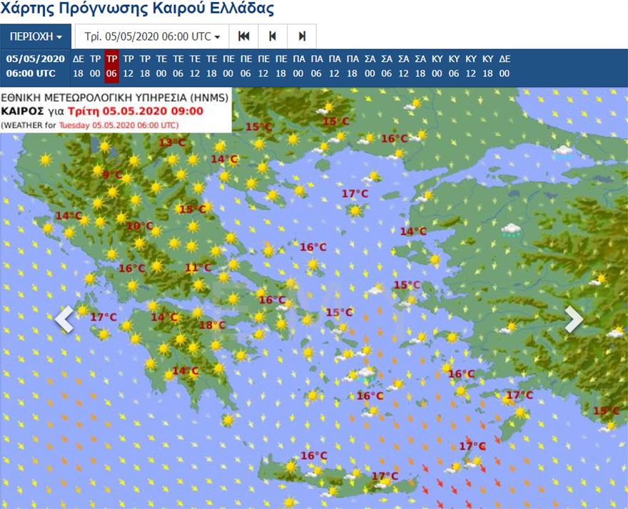 Ηλιοφάνεια με λίγες νεφώσεις, αυξημένες τις πρωινές ώρες στο Ανατολικό και Νότιο Αιγαίο και τις θερμές ώρες της ημέρας στα ηπειρωτικά, με πιθανότητα τοπικών βροχών τις πρωινές ώρες στο Νοτιοανατολικό Αιγαίο ή μεμονωμένων καταιγίδων στα Δωδεκάνησα, με βαθμιαία βελτίωση στη συνέχεια περιμένουμε την Τρίτη 5 Μαΐου 2020.