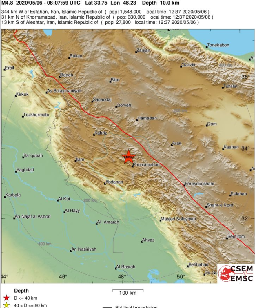 Ο σεισμός, όπως τον κατέγραψαν οι σεισμογράφοι, σημειώθηκε μόλις 13 χιλιόμετρα από την περιοχή Aleshtar.