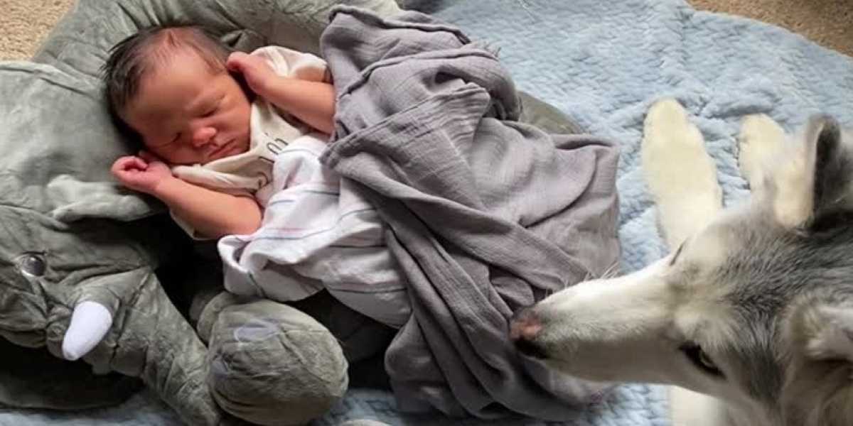 «Δεν υπάρχει περίπτωση!»: Χάσκι αρνείται να αφήσει μωράκι από τα μάτια του (βίντεο)