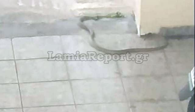 Οι ένοικοι της πολυκατοικίας επί της οδού Παπαφλέσσα στη Λαμία τρόμαξαν αντικρίζοντας ένα μεγάλο φίδι να σέρνεται στην πυλωτή. Η πρώτη τους αντίδραση ήταν να καλέσουν την Πυροσβεστική. Δύο πυροσβέστες κατάφεραν γρήγορα να εντοπίσουν και να απομακρύνουν με ασφάλεια το φίδι, που είναι άγνωστο πως βρέθηκε στην… τσιμεντένια “ζούγκλα”.