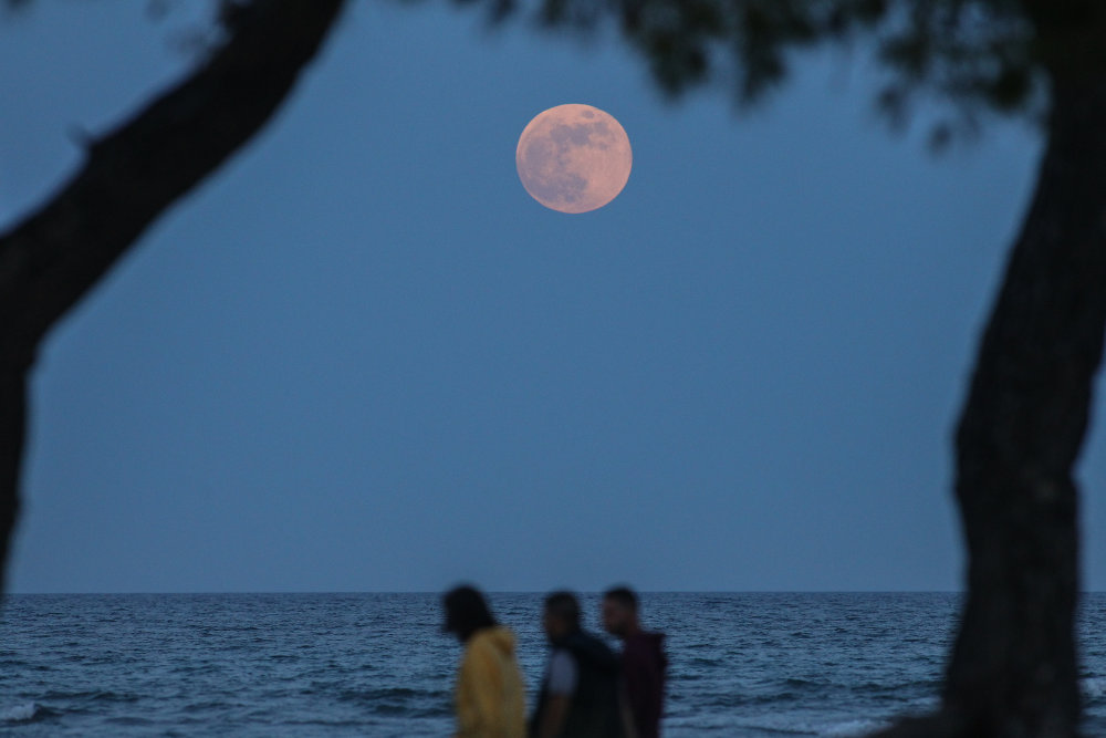 Η Πανσέληνος δημιούργησε ένα απολαυστικό σκηνικό και στην παραλία της Αρτέμιδας, όπου το φεγγάρι πήρε ένα απαλό ροζ χρώμα πάνω από τη θάλασσα πριν ξεκινήσει το φαινόμενο της έκλειψης παρασκιάς.