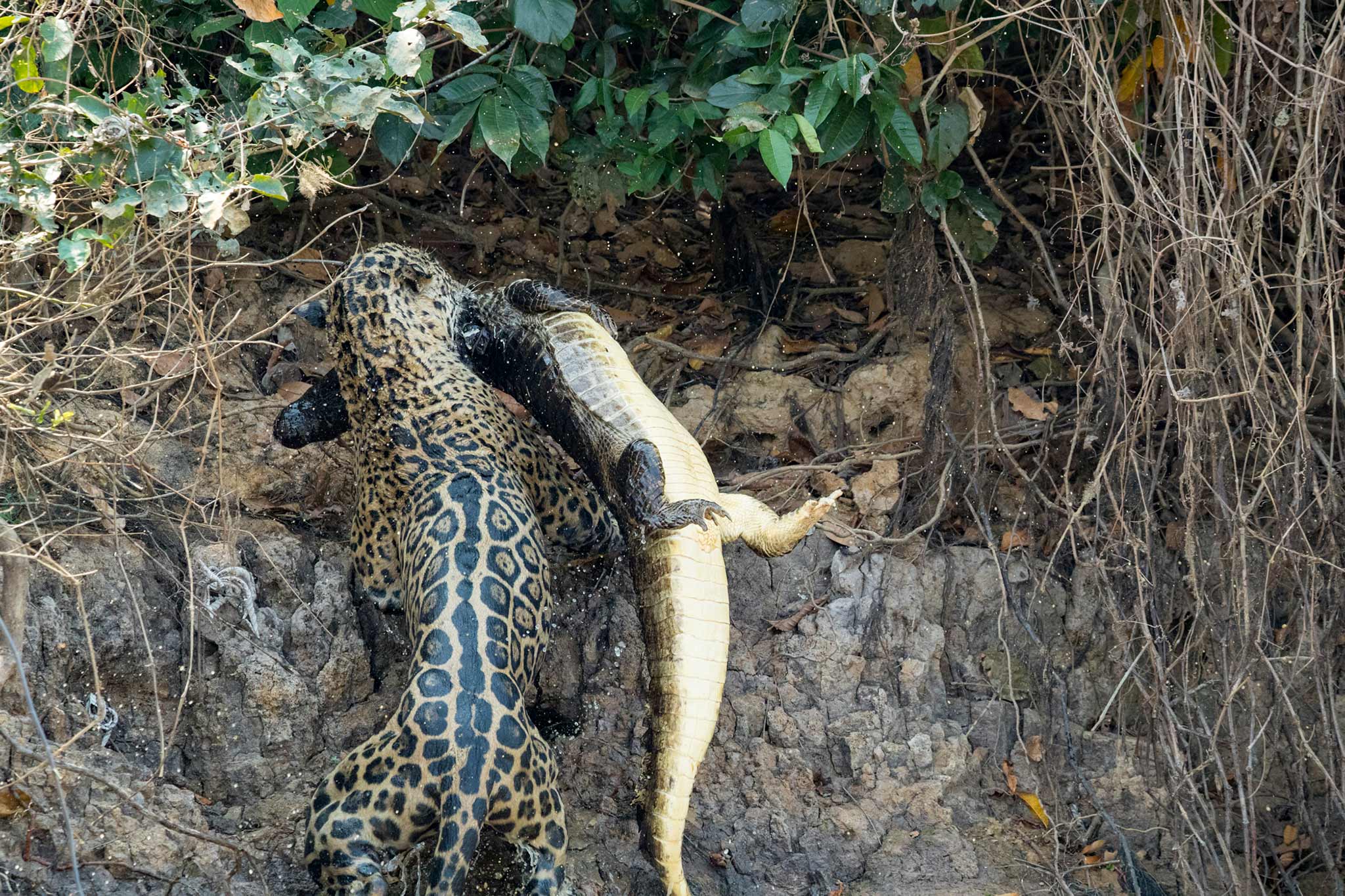 Η αλήθεια είναι πως κανένα ζώο δεν θα τα έβαζε με έναν κροκόδειλο και αυτή ίσως η σιγουριά είναι που κόστισε στον κροκόδειλο. Την ώρα που κολυμπάει αμέριμνος σε μια λίμνη, ένας ιαγουάρος του ορμάει και τελικά… τον κάνει το φαγητό του.