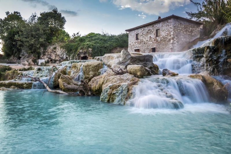 Ανάμεσα στους λόφους και τους αμπελώνες της υπαίθρου της Τοσκάνης βρίσκεται ένα από τα πιο εντυπωσιακά τουριστικά αξιοθέατα όχι μόνο στην Ιταλία, αλλά σε ολόκληρο τον κόσμο – ένας καταρράκτης που ρέει σε λευκές πισίνες από ασβεστόλιθο που ξεχειλίζουν με ζεστό, τιρκουάζ νερό.