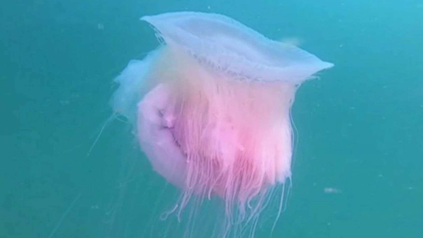 Δύτες βρέθηκαν αντιμέτωποι με πρωτόγνωρη εικόνα. Όπως φαίνεται και στο βίντεο εθεάθη μια τεράστια και σπάνια ροζ τσούχτρα.