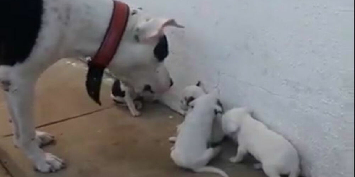 Συγκεκριμένα, ένας σκυλο-μπαμπάς φαίνεται να κατσαδιάζει αγρίως τα παιδιά του γαβγίζοντας κι αυτά, τρομαγμένα από τις φωνές του, κρύβονται το ένα πίσω από το άλλο, γυρνώντας προς τον τοίχο.