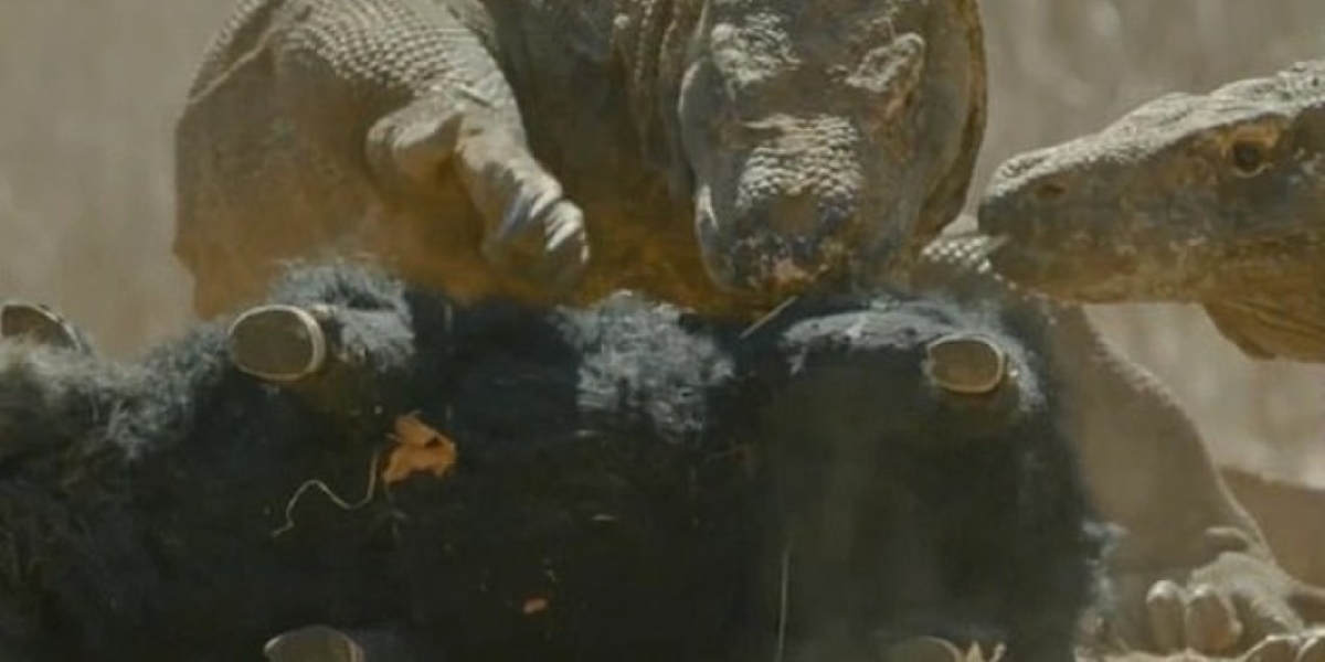 Ένα απίστευτο βίντεο έβγαλε το BBC στη δημοσιότητα με δράκους του Κομόντο να τρώνει ψεύτικο χοίρο.