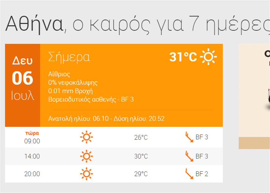 Η θερμοκρασία στο κέντρο των Αθηνών θα κυμανθεί από 25 έως 33 βαθμούς.
